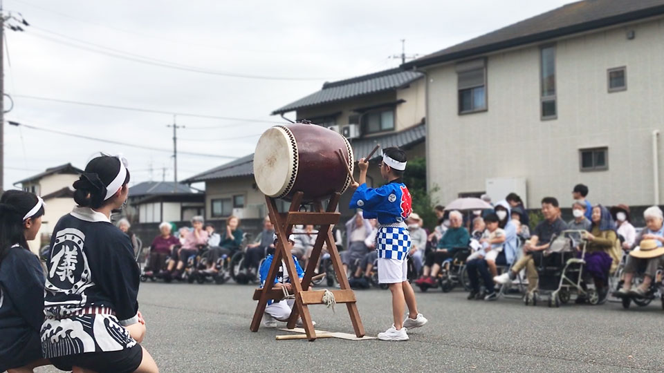 こども達による民謡太鼓やソーラン節の踊りも入居者の皆様に大変喜んでいただけました。